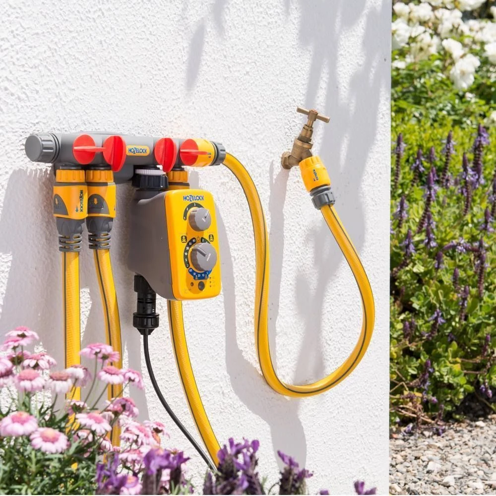 The Hozelock 4-Way Tap Connector turns your normal garden tap into 4 taps, each with their own flow control switch and male connector. It comes with fittings to allow easy installation to a wall and 2 hose end connectors so all you need is a length of hose to link the connector to your Hozelock ready tap. 100% compatible with the Hozelock connect system.