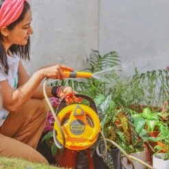 The Hozelock Micro Reel is an easy to use hose, useful for smaller gardens and outdoor spaces. This reel includes a 10m hose including a nozzle and tap fitting attached which you can easily unwind from the handy rotating drum with tangling. When you are finish with those, simply roll up and store.